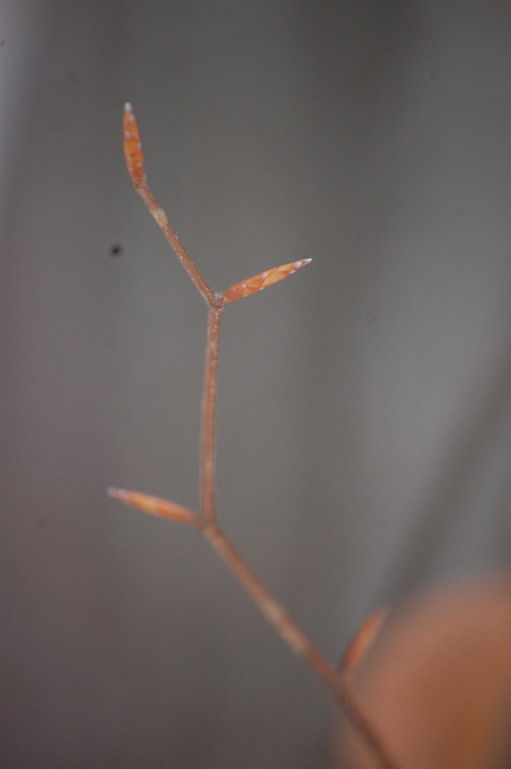 Buds on basal part of twig: very small, inconspicuous, and stalkless.